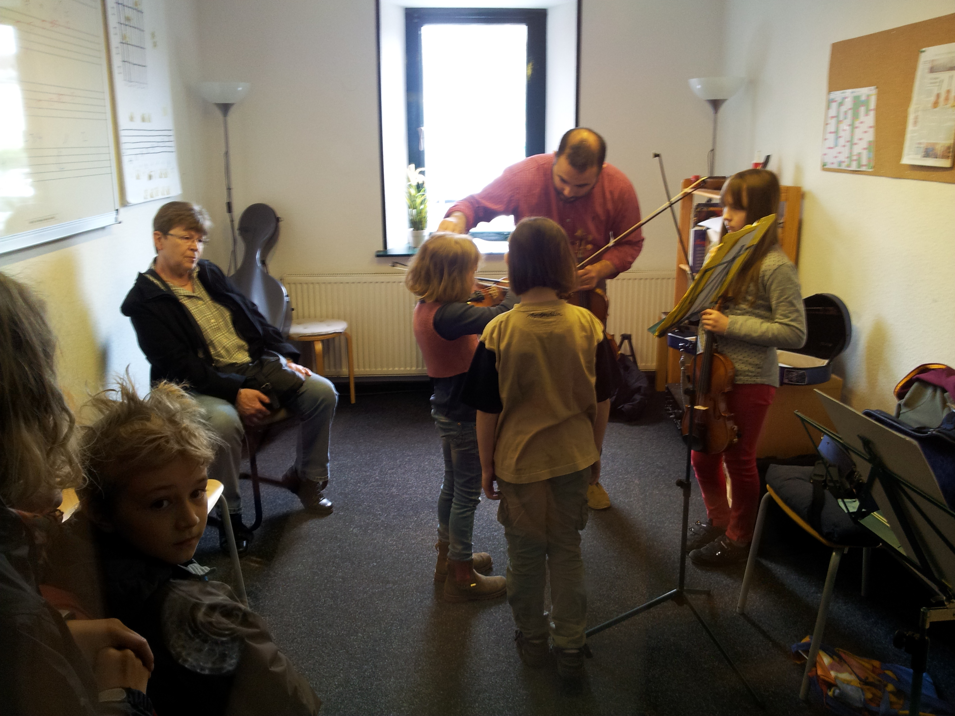 Viele Gäste haben den Tag der offenen Tür genutzt, um verschiedene Instrumente auszuprobieren und sich über den Unterrichtsaufbau zu erkundigen.