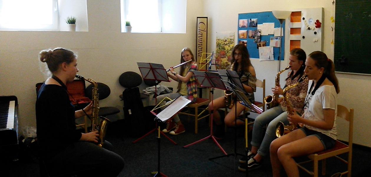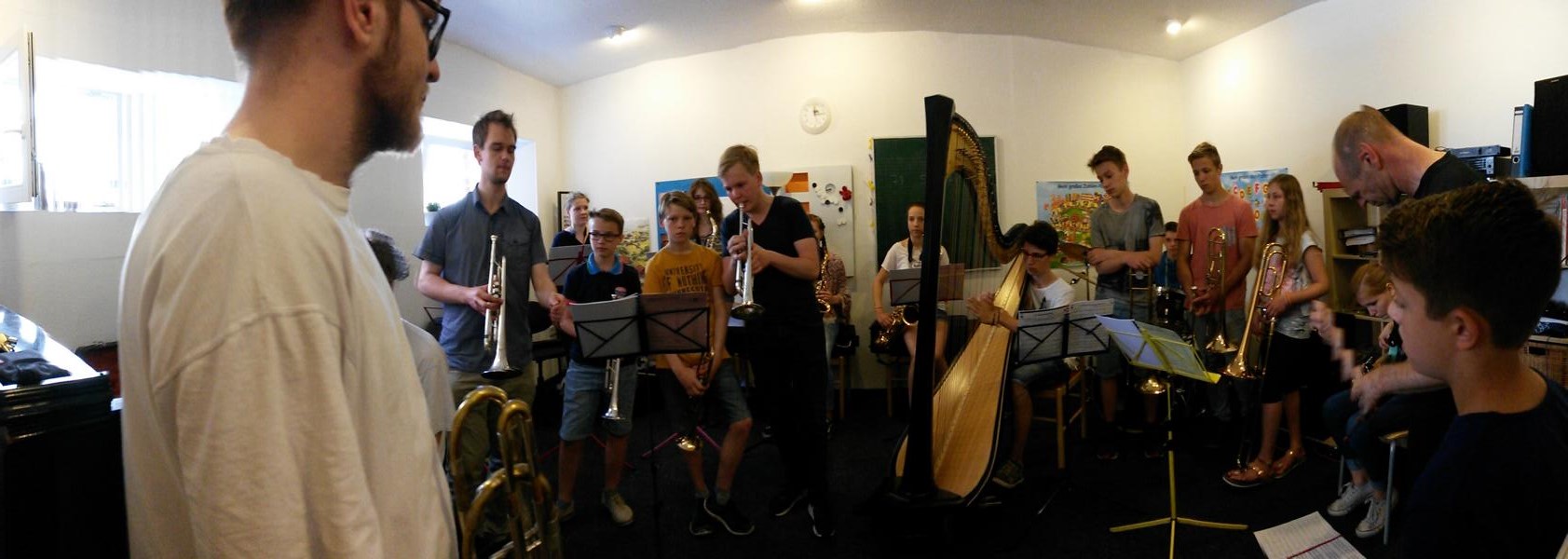 Angesprochen waren Jugendliche, Jazz-Einsteiger und Fortgeschrittene Bigband-SpielerInnen. Auf dem Programm standen Grundlagen der Improvisation, Bluesschema, Swing-Feeling, Skalen und Improvisation für die Fortgeschrittenen, sowie das musizieren in der Combo mit Solospiel zum Abschluss.